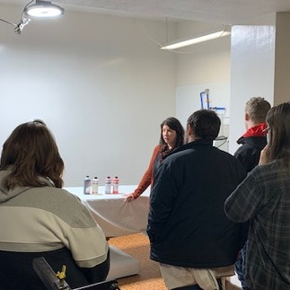 The tour began in the viewing room where funeral director, Melissa Chagnon Sayers, discussed the day-to-day operations at the business and everything that goes into a successful funeral service. She touched on the business aspects, how a funeral is organized, as well as the emotional/compassion requirements needed when working with grieving families. After the viewing room, the students toured the “showroom” area where caskets and urns were on display. The process and differences between a burial and a cremation were discussed, as well as costs and considerations. The last area toured was the embalming room. Melissa explained the process, the tools and chemicals, the training requirements for the embalmer, the added steps needed when Covid deaths started coming through the home, and the timeline between a death and a burial/cremation.